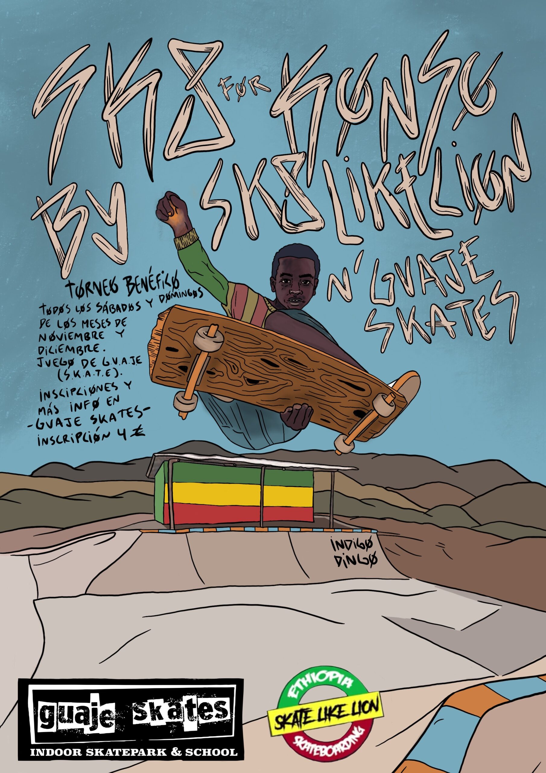 Cuadrante categoria -14 Cuadrante categoria +15 Desde el Club Guaje Skates y Skate Like Lion organizamos un evento en nuestras instalaciones para recaudar fondos para el proyecto que tienen en marcha www.skatelikelion.org. Este proyecto nace de la construcción de un skatepark en Konso (Etiopía) de la mano...